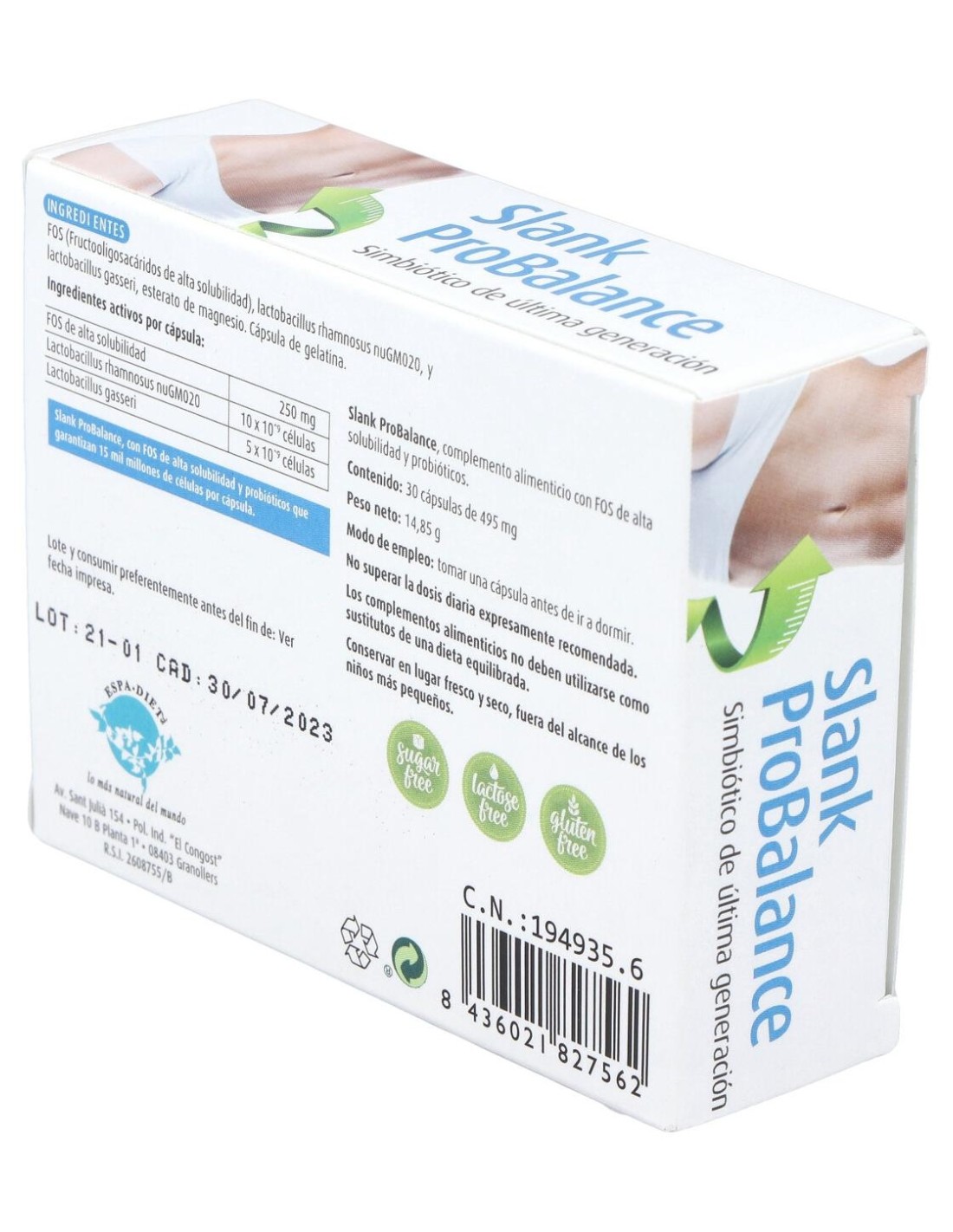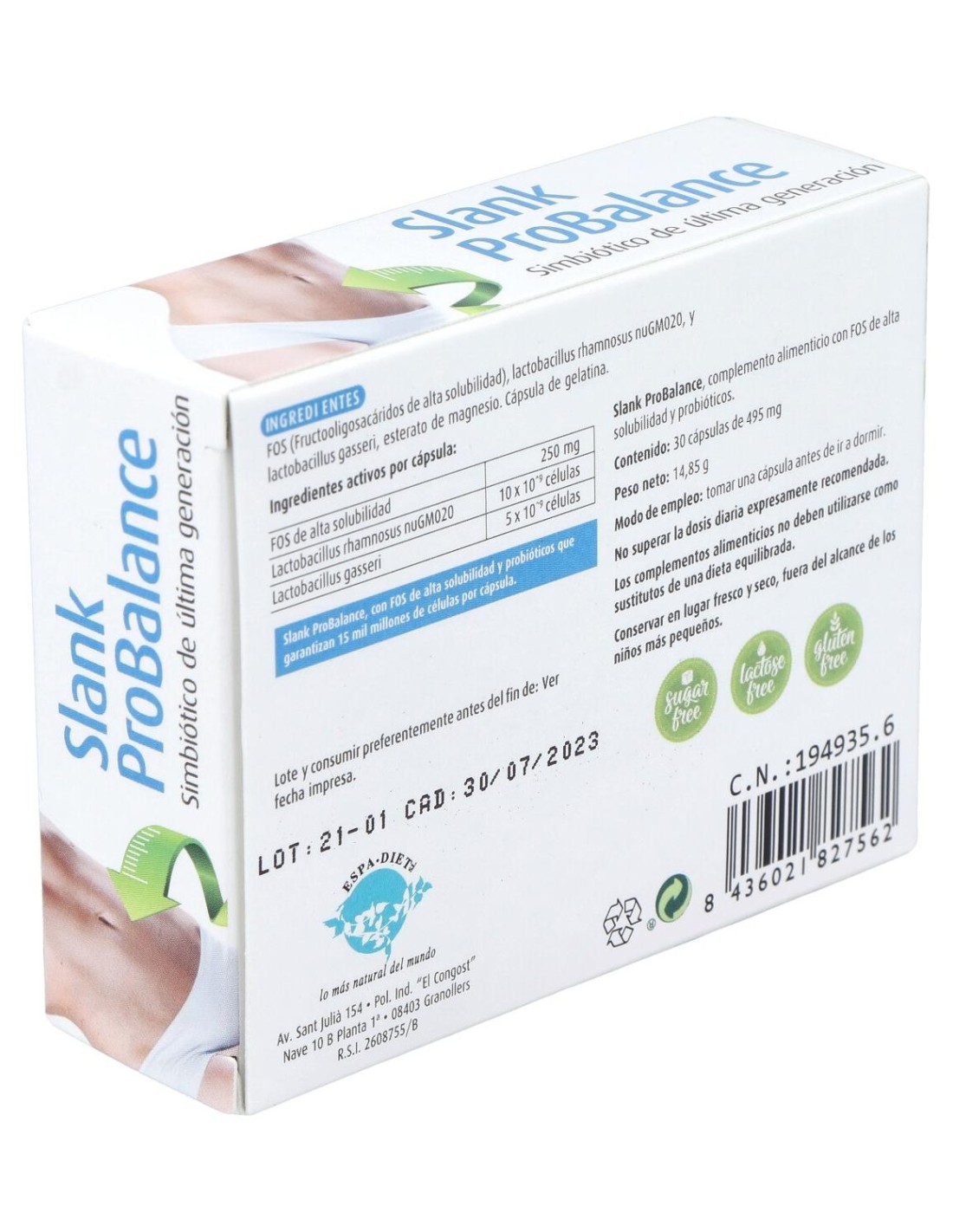 Fibra prebiótica Fos, lactobacillus rhamnosus-GM020, lactobacillus gasseri, almidón de maíz. Cápsula de gelatina.