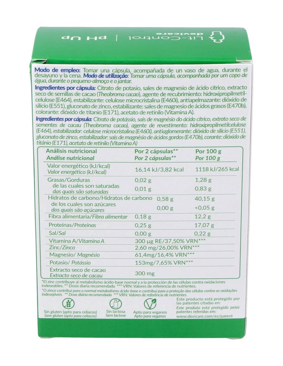 Suplemento que contiene Citrato de potasio y de magnesio que ayuda a aumentar el pH urinario. Esta alcalinización de la orina junto a la acción de la Teobromina, contribuye a mantener un normal mantenimiento del sistema urinario. Apto para veganos.