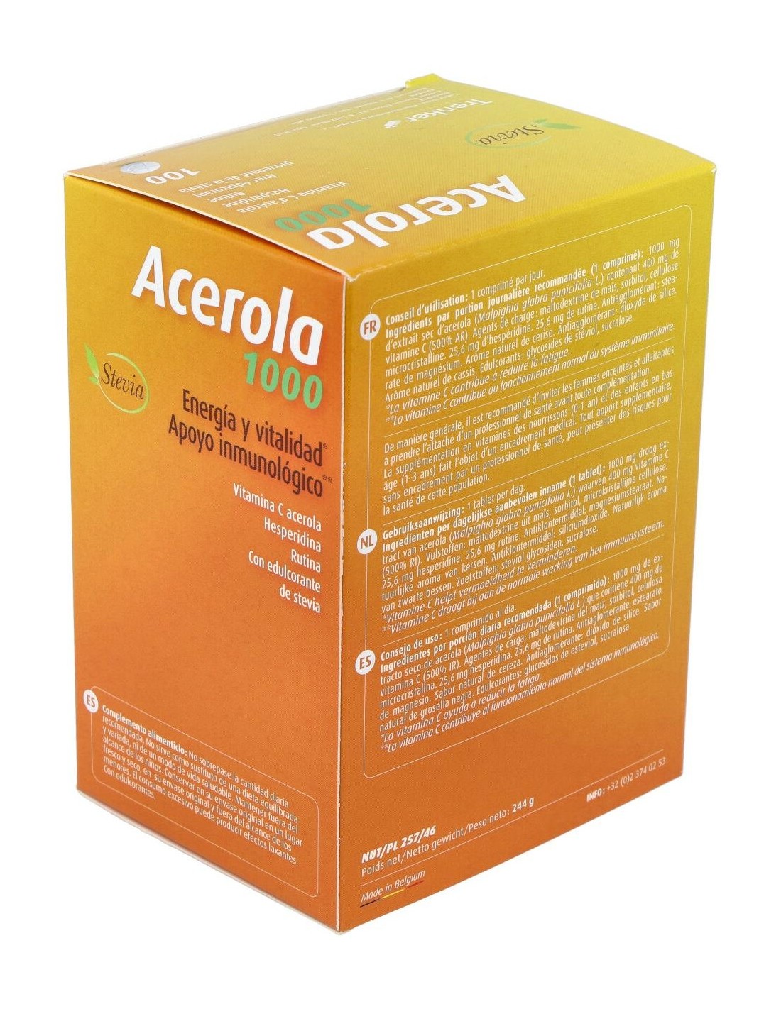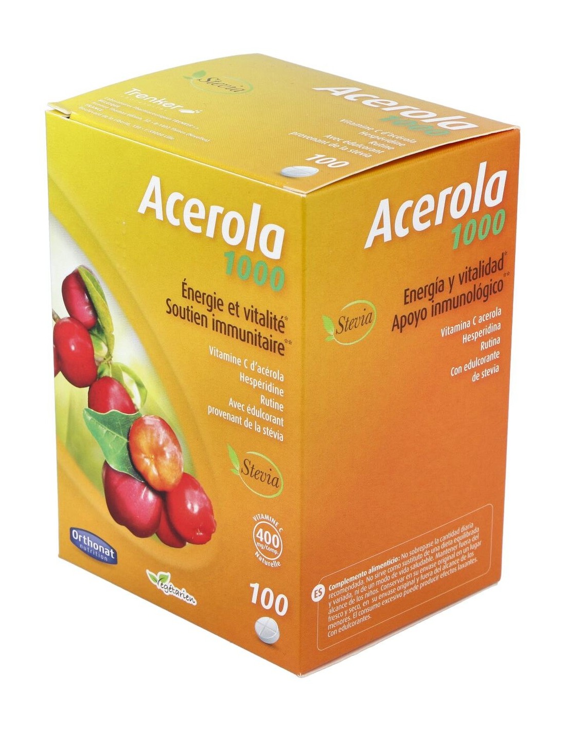 Zumo Acerola deshidratado (Malpighia punicifolia L.) 1.000 mg (conteniendo 400 mg vitamina C completa).