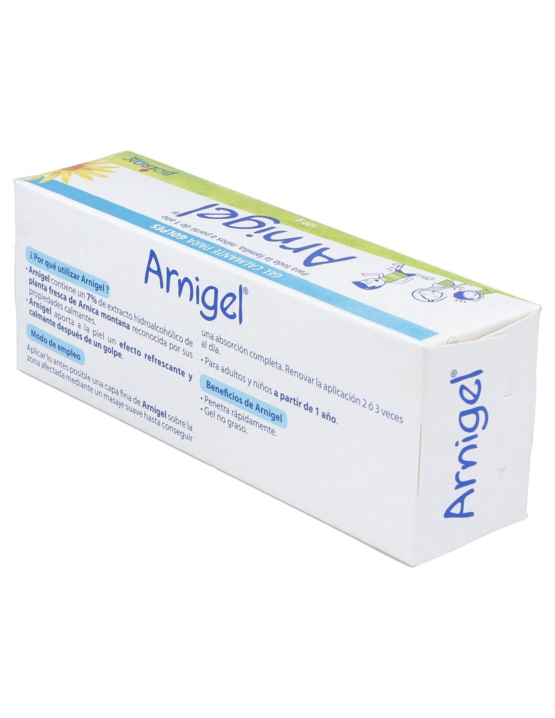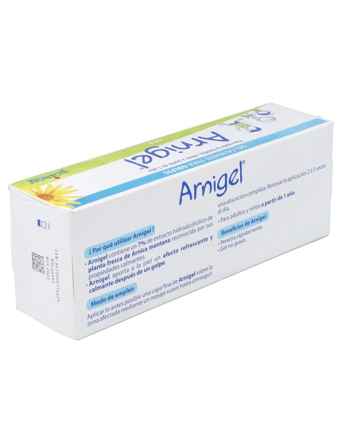 Gel calmante para golpes, a partir de planta fresca de Árnica Montana. Para adultos y niños a partir de 1 año.