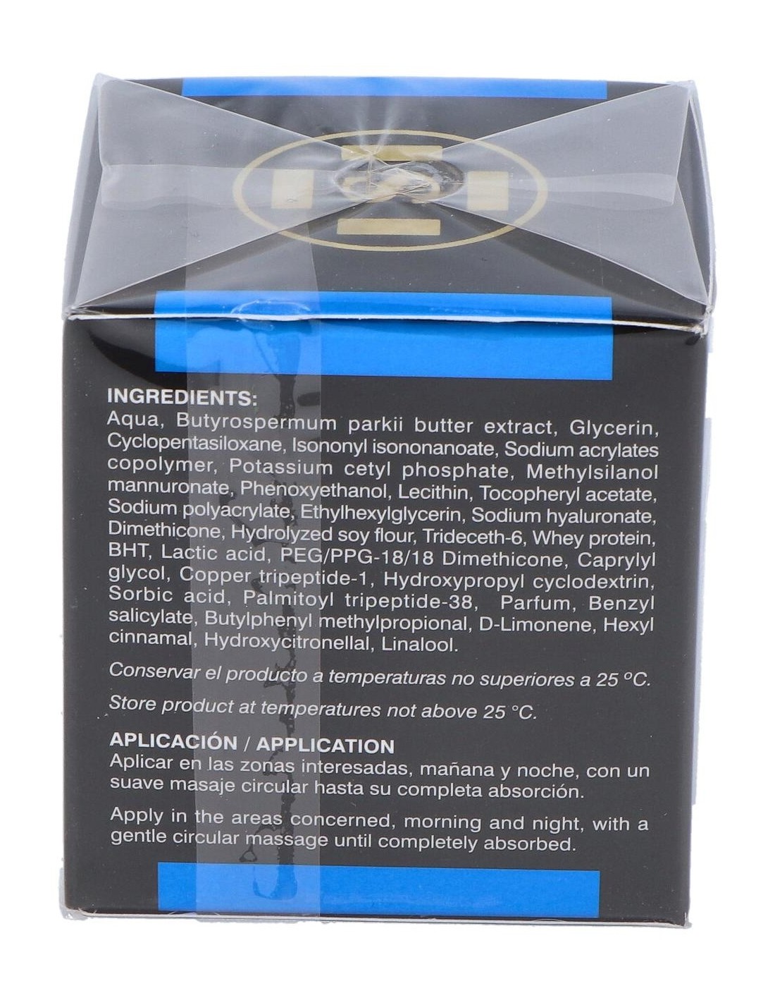 Tratamiento reafirmante de la piel con péptidos biomiméticos. Tratamiento reafirmante de la piel con péptidos biomiméticos.Precauciones:No se han descrito.Composición:Ácido hialurónico, manteca de karité, vitamina E, methylsilanol mannuronate, palmitoyl tripeptide-38, milk peptides complex (citoquinas), hydrolized soy flour, cooper tripeptide-1.Modo de empleo:Aplicar por la mañana y la noche con suaves masajes....