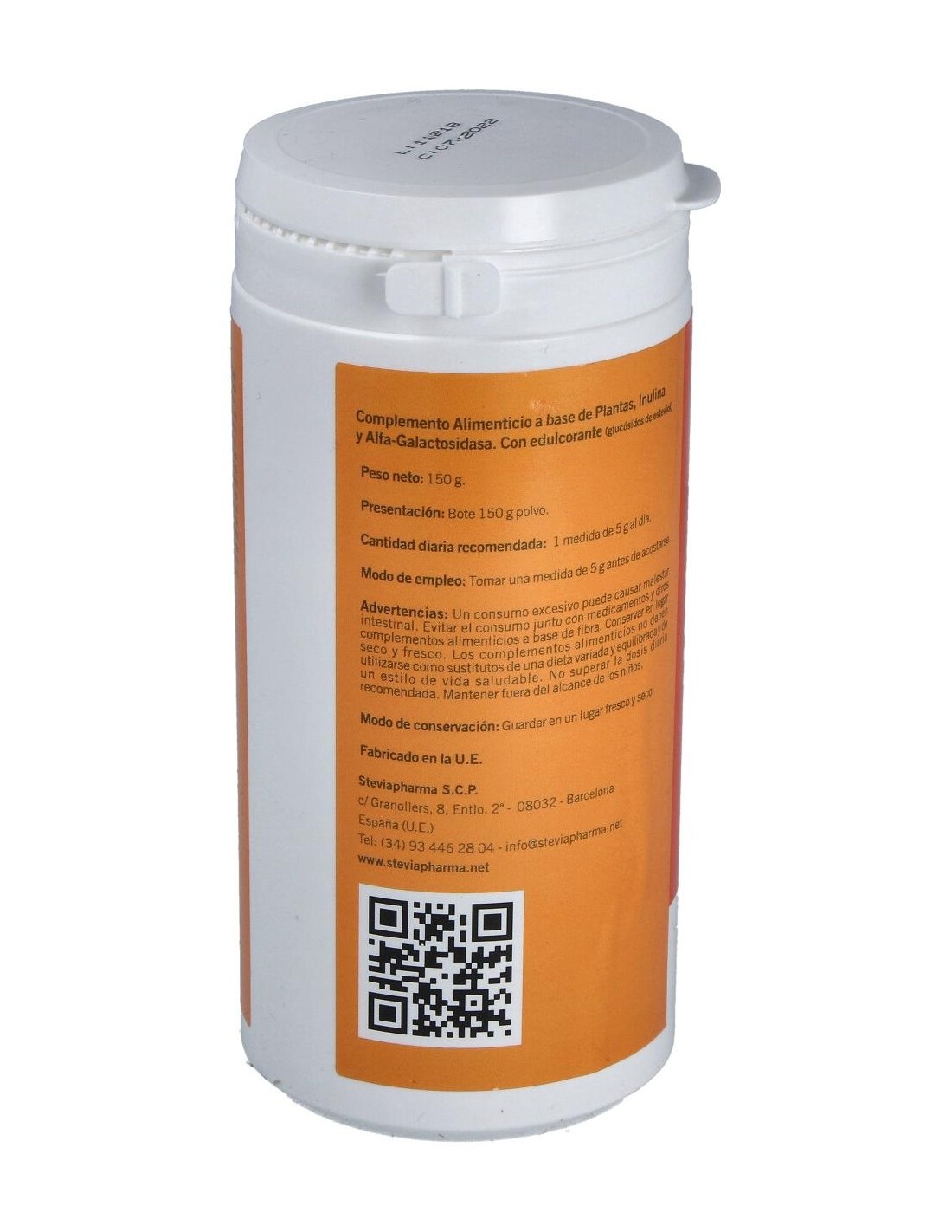 Ispágula cutícula (plantago ovata forssk): inulina (fibra de achicoria), col fermentada liofilizada, (brassica oleracea var. capitata:): grosellero negro fruto zumo concentrado: acerola fruto esn 50% vit. c (malpighia glabra l.): aloe acibar polvo hojas 18% barbaloína (aloe ferax miller), menta hojas esn ratio 10:1 (mentha piperita l.): pomelo semilla esn (citrus grandis l. osbeck). alfa-galactosidasa 30.000 galu/g.: bioflavonoides cítricos 60% hesperidina (citrus sinensis): aroma cítrico natural polvo, piña, naranja polvo zumo concentrado (citrus sinensis l.) agente de carga: maltodextrina de maíz.
