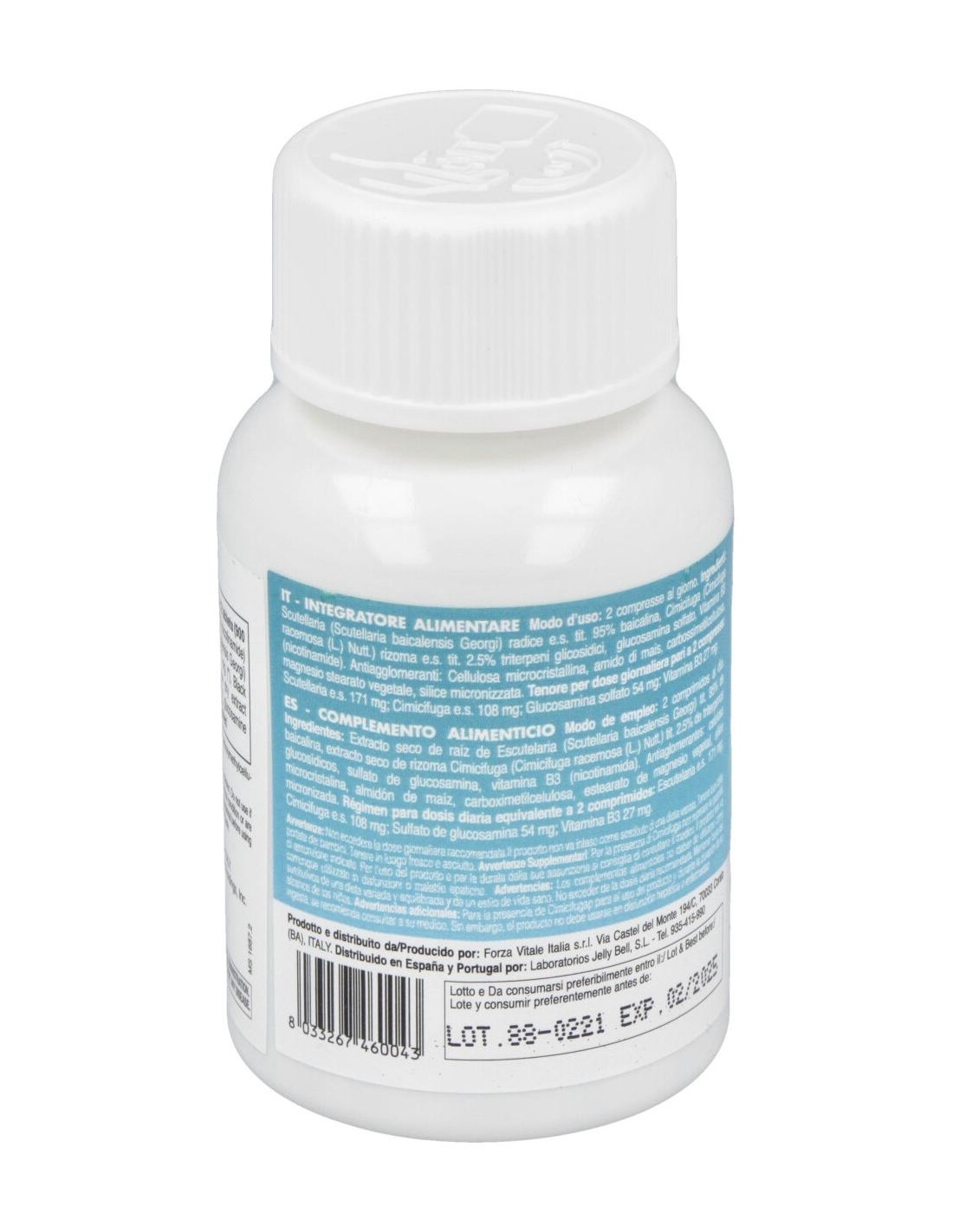 Escutelaria e.s. 171 mg Cimífuga e.s. 108 mg, Glucosamina sulfato 54 mg, Vitamina B3 27 mg