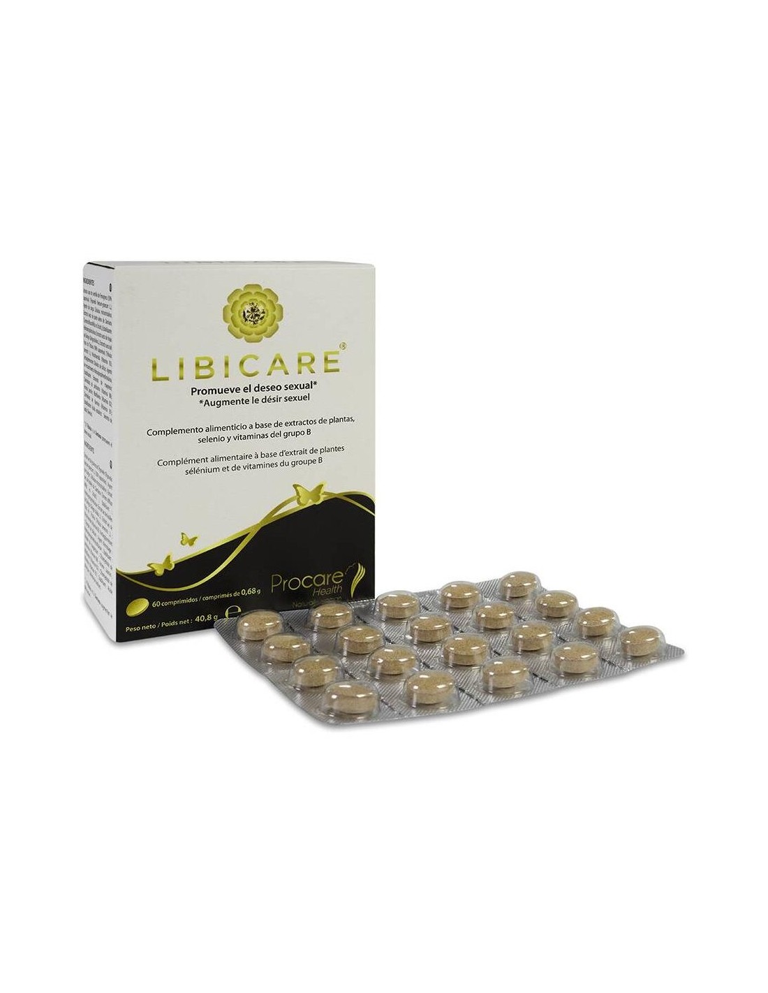 Por comprimido: Extracto seco de trigonella: 300 mg Saponinas: 150 mg Extracto seco de Damiana 4:1: 75 mg Extracto seco de Ginkgo: 25 mg Ginkgoflavonoides: 6,25 mg Extracto seco de tribulus: 20 mg Saponinas: 18 mg Vitamina B3: 16 mg Vitamina B2: 1,4 mg Vitamina B1: 1,1 mg Vitamina B6: 1 mg Selenio: 25 mcg
